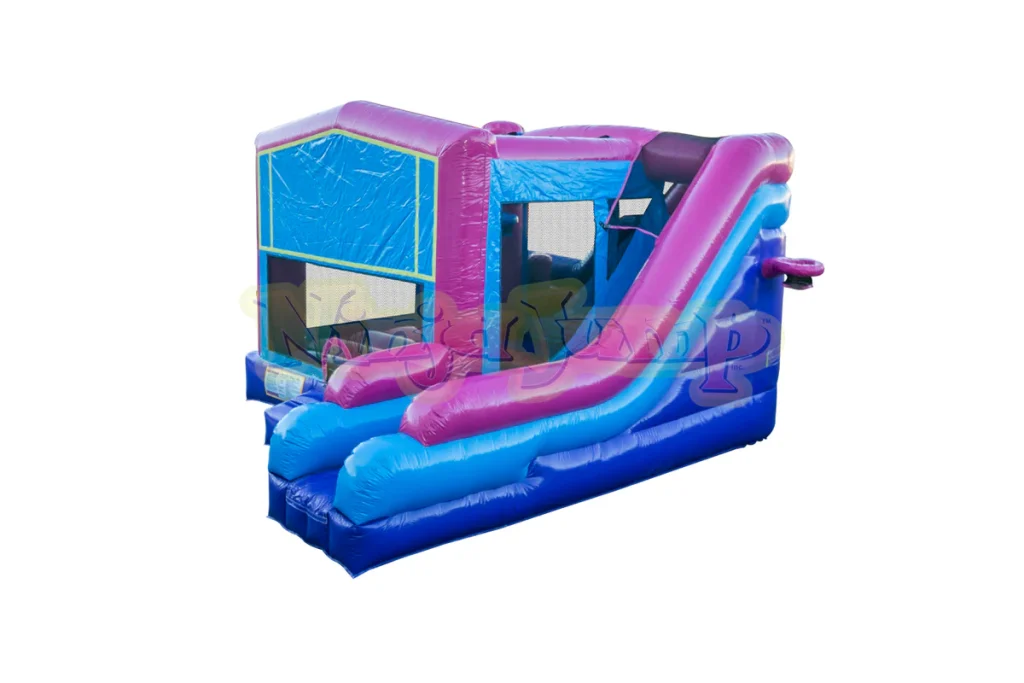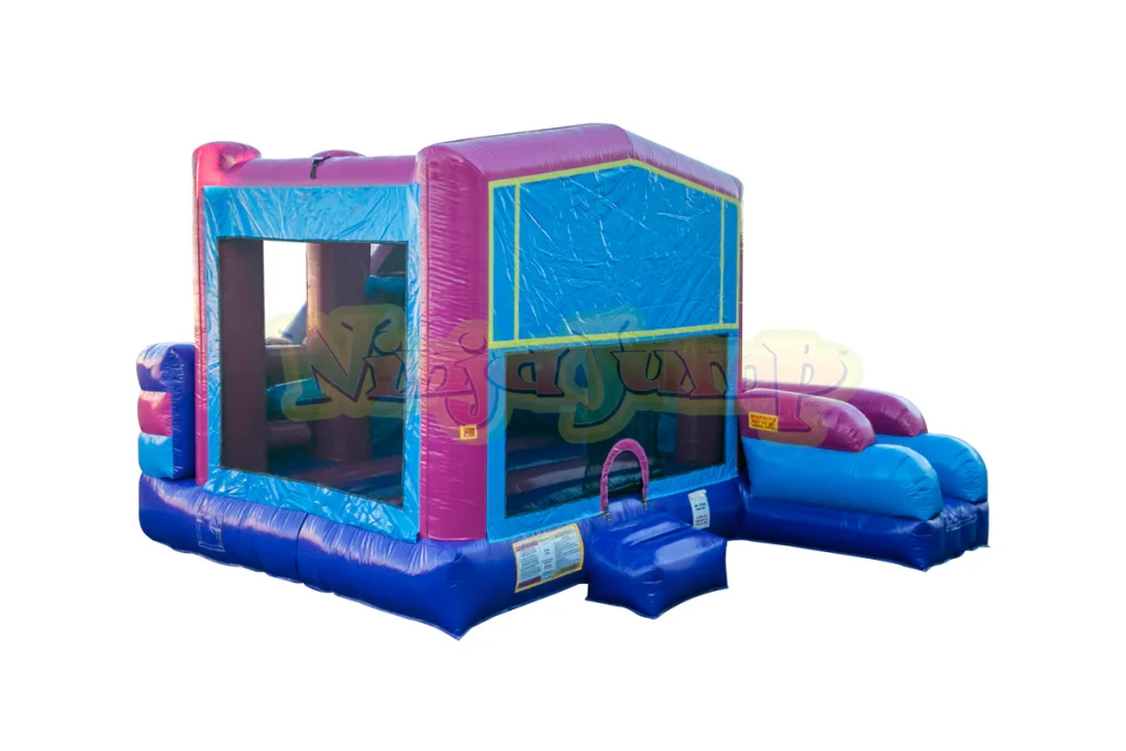 The 5-in-1 Combo Jumper is an action-packed inflatable that offers five exciting activities in one. It includes a spacious bounce area, a climbing ramp, a thrilling slide, an interactive basketball hoop, and a fun obstacle course. Perfect for any event, this combo jumper delivers endless entertainment for kids of all ages, making your party an unforgettable experience!