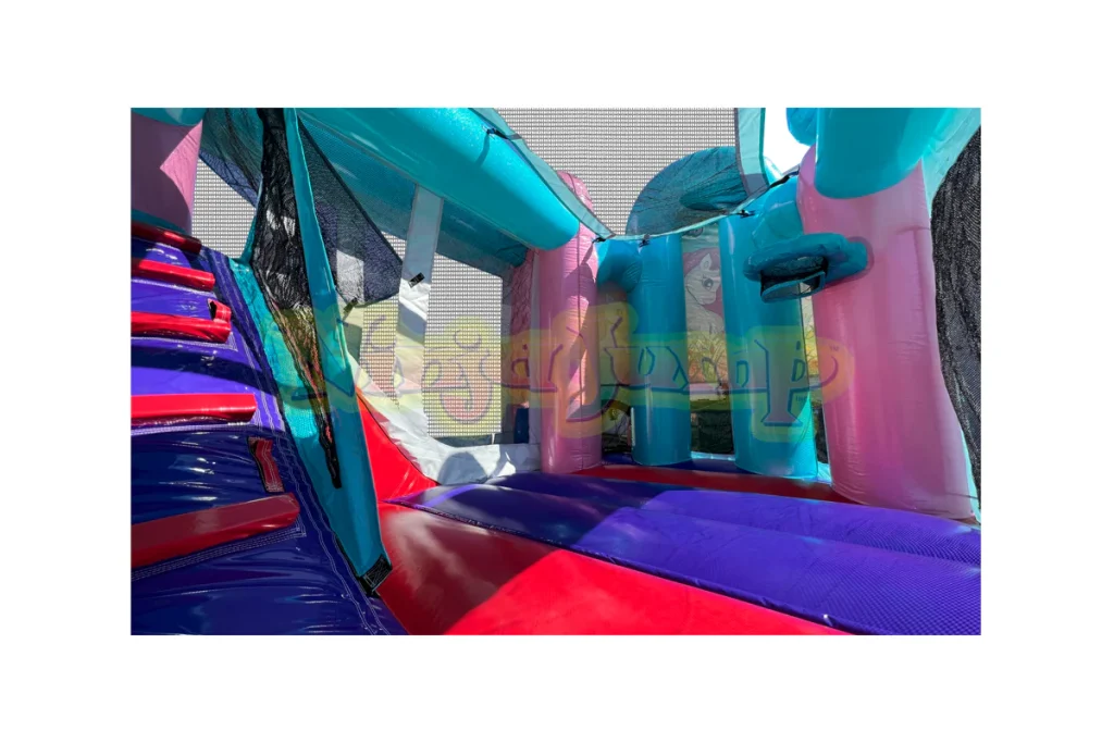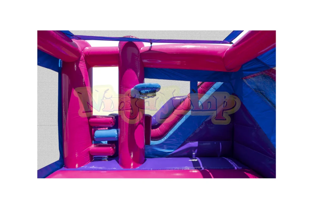The 6-in-1 Combo Jumper is a dynamic inflatable that combines six exciting activities into one compact unit. It features a spacious bounce area, challenging obstacles, a tunnel, a climbing ramp, a thrilling slide, and an interactive basketball hoop. Perfect for any event, this combo jumper provides endless entertainment for kids of all ages, ensuring a fun-filled and memorable party experience!